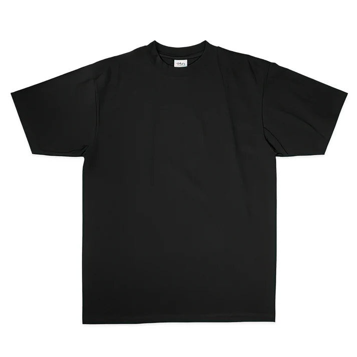 100% cotton, 7.5 oz heavyweight. Thick and structured feel. Soft after wash.